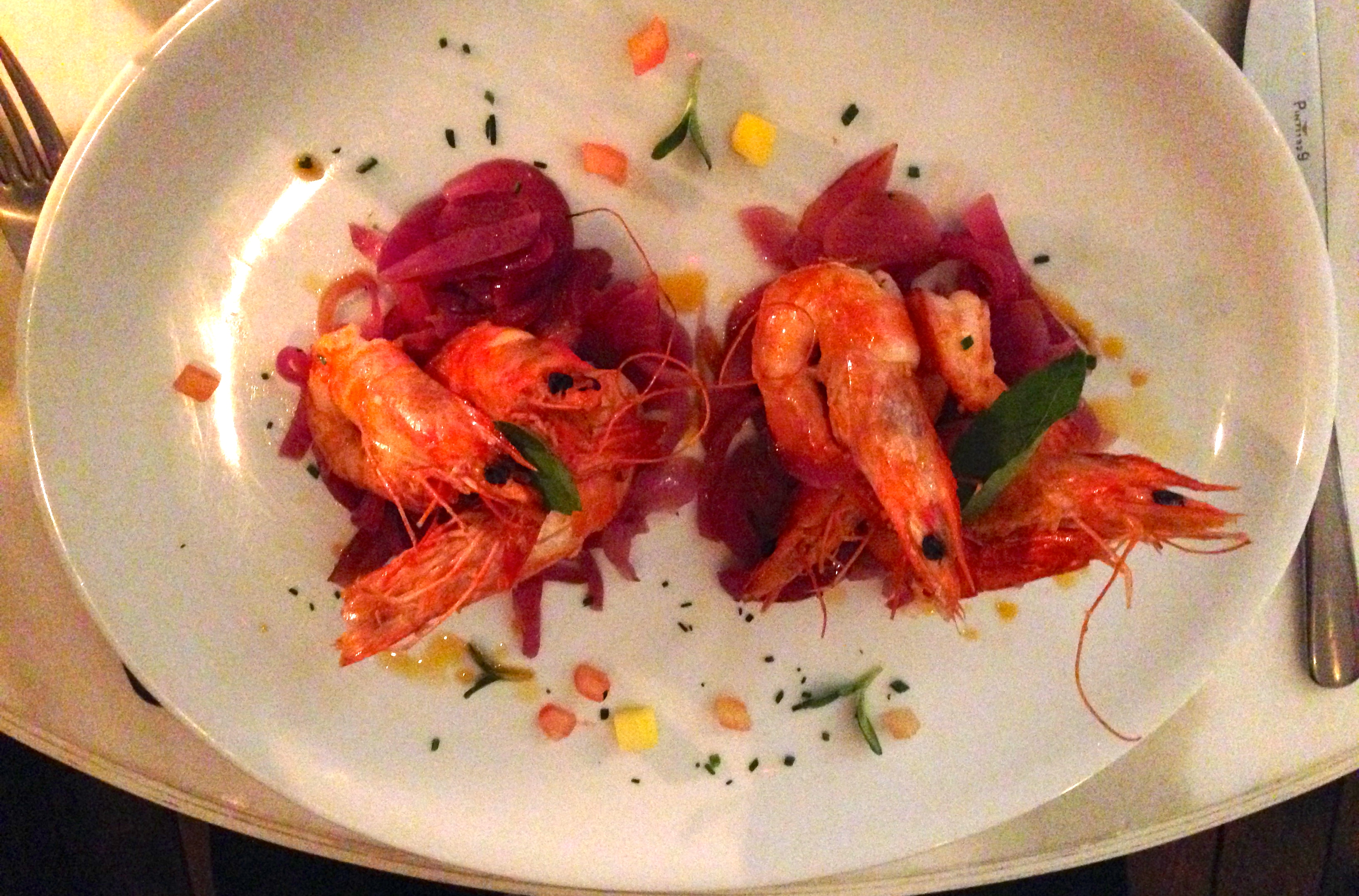 Gamberi spadellati al Laphroaig e cipolle di Tropea