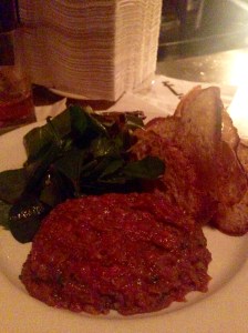 Hand-Cut Steak Tartar with Crostini & Mixed Greens Salad