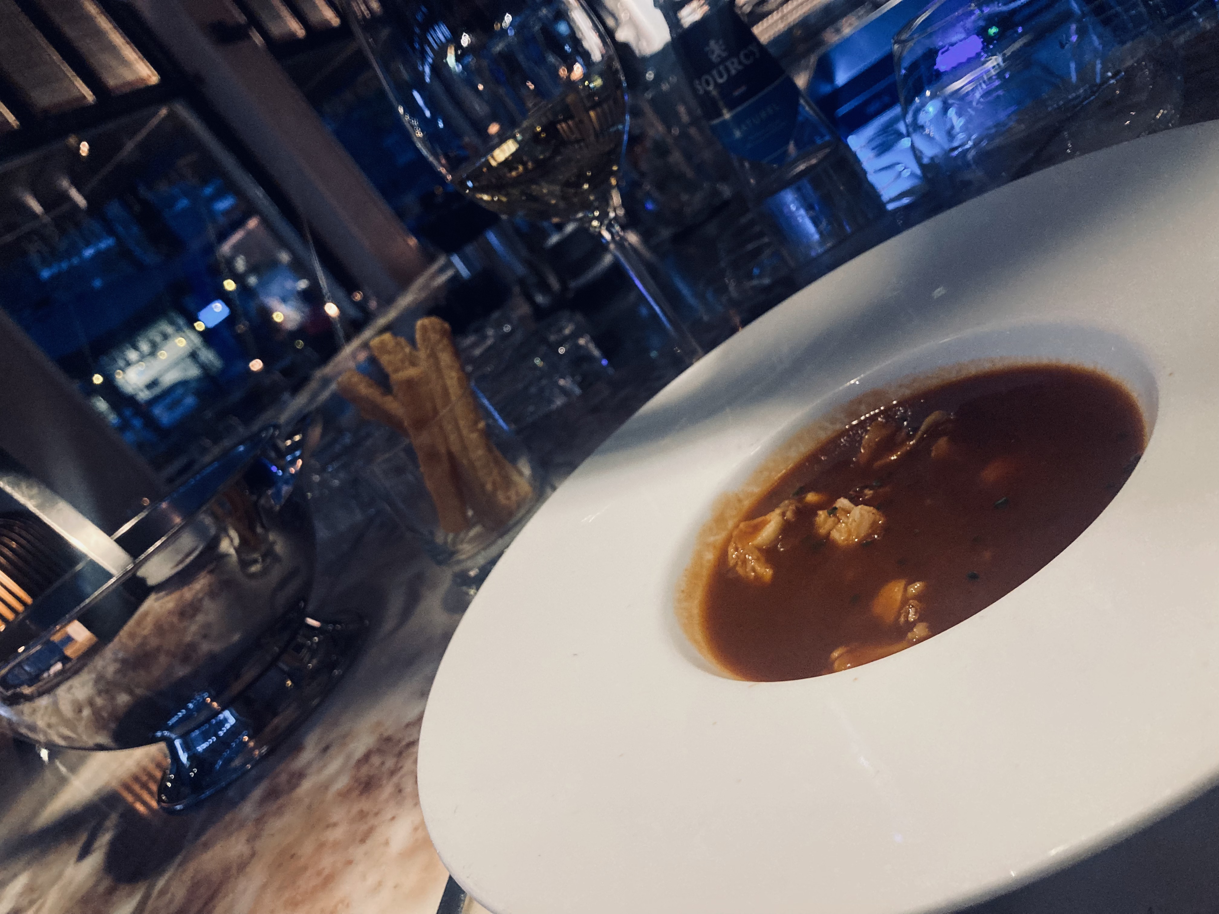 Una tarde de sábado en octubre, me decidí a visitarlo. Me recibió Francis, la anfitriona con cara de pocos amigos, y al mencionar que no tenía reserva le pregunté si podía sentarme en la barra. Me dió la sensación que mucha gracia la sugerencia no le hizo pero me ubicó en una de las butacas. En ese momento pensé, ¿Me quedo o me voy?… Hoy pienso que me tendría que haber ido, pero recuerdo que estaba famélica, y al final me quedé.