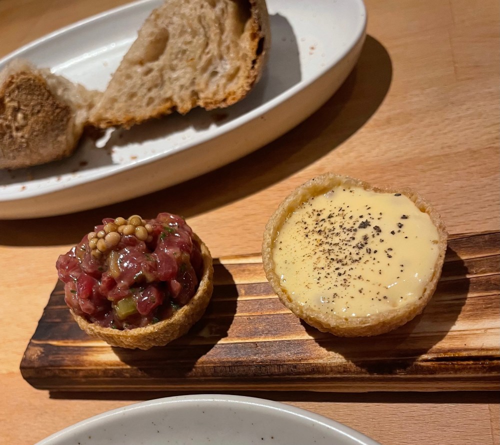 El 1er paso fue el Steak tartar de vaca madurada y sabayón. Al principio, cuando vi los tamaños, pensé que me iba a morir de hambre. Pero cuando terminé todos los pasos, estaba repleta.