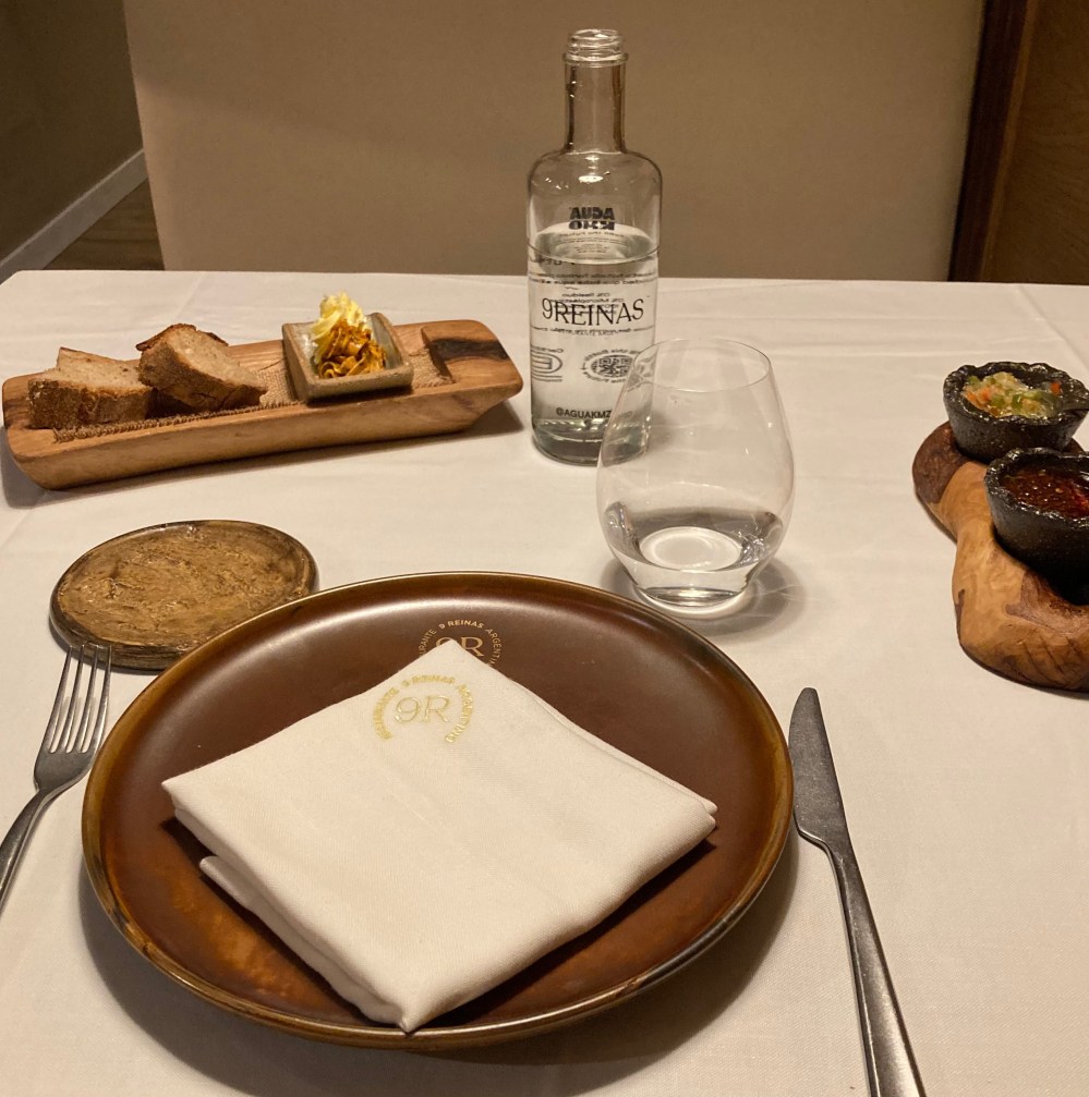 Me trajeron a la mesa el servicio de pan y aperitivo (dos tipos de manteca) – que recién ahora leo en el menú online -, que podría haber suspendido. Lo cual debería haber hecho porque no quería comer pan.