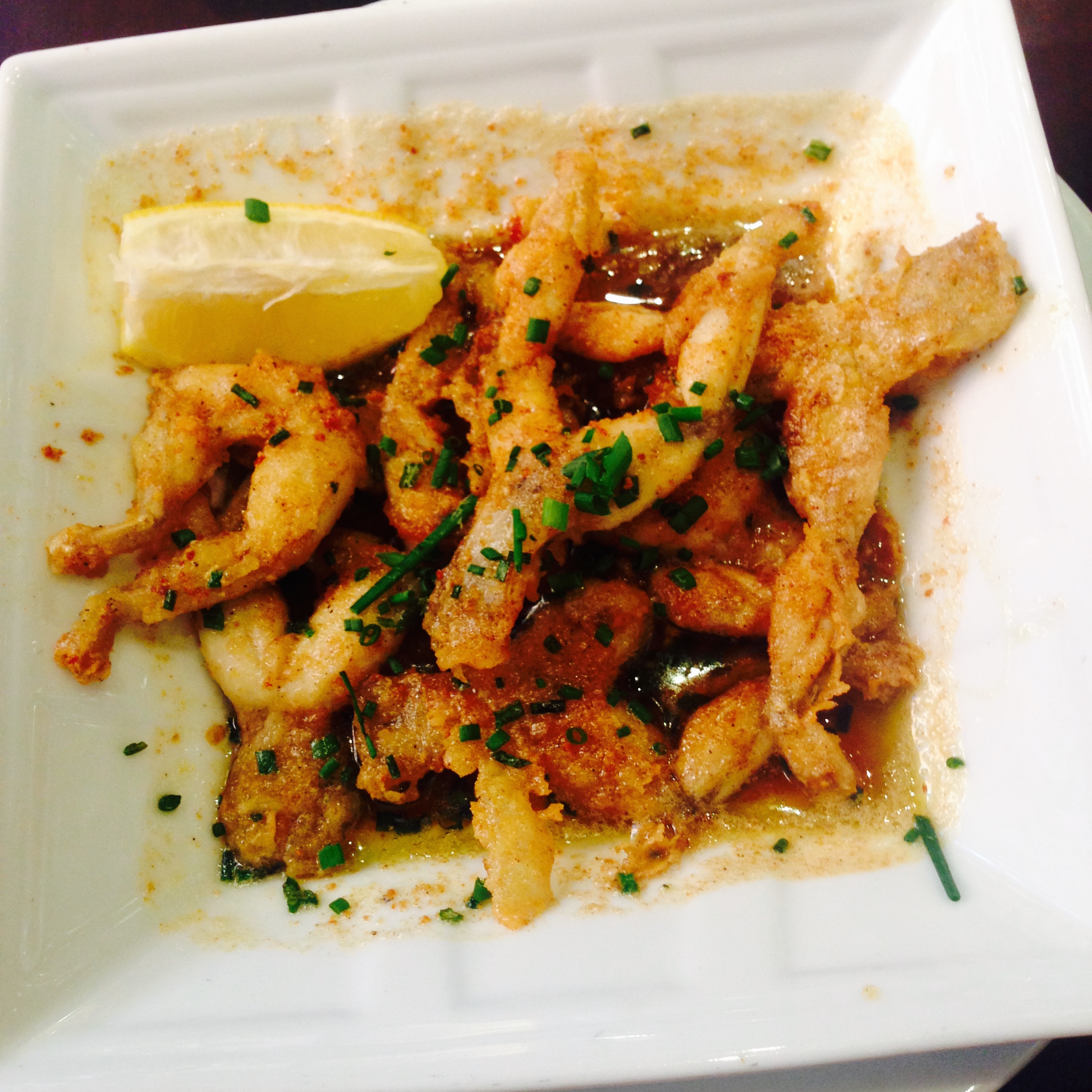 Piernas de rana con ajo, perejil y salsa de manteca